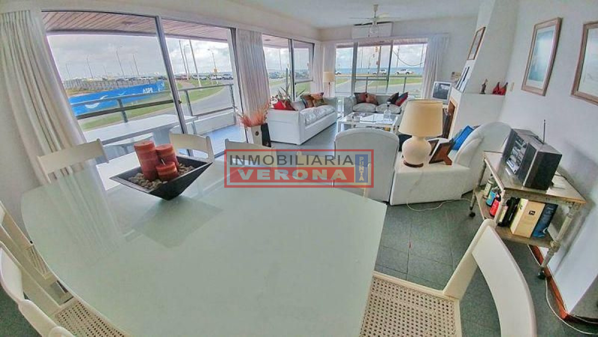 Amplia planta en primera línea con vista a Playa Mansa. Departamento con amplio living comedor con hogar a leña y vista al mar. Estufa a leña, acceso a balcón principal. Cuenta con 4 dormitorios y 4 baños, (3 en suite), toilette. parrillero de uso exclusivo. Cocina definida clavadero y balcón con vista a la laguna. Cochera techada.