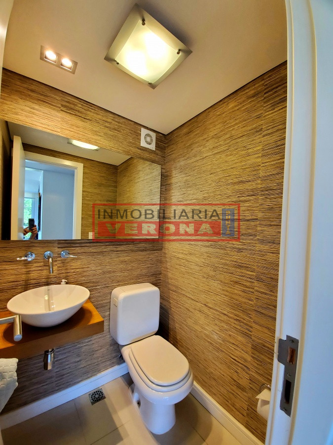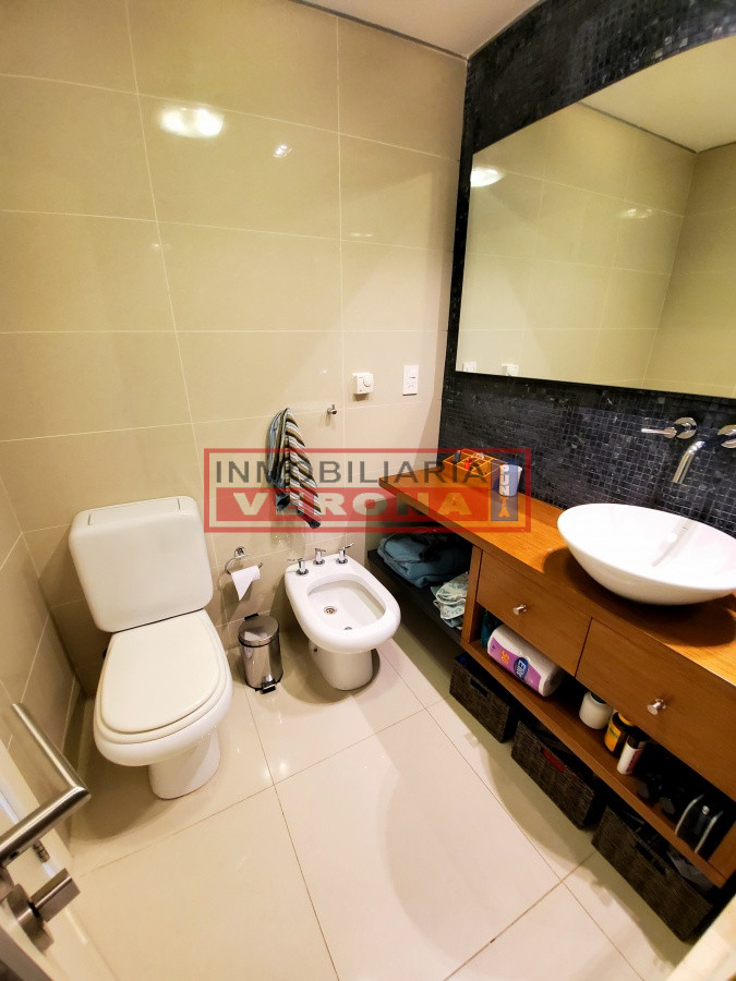 La unidad se desarrolla en dos plantas: en Planta Alta: gran living comedor con amplios ventanales muy luminoso, terraza, cocina semi integrada, toilette, 3 dormitorios, 2 baños (principal en suite con jacuzzi). En planta baja se distribuye en area de tv, comedor con una segunda cocina, laundry con dependencia de servicio, baño completo, parrillero y terraza con salida al jardín.