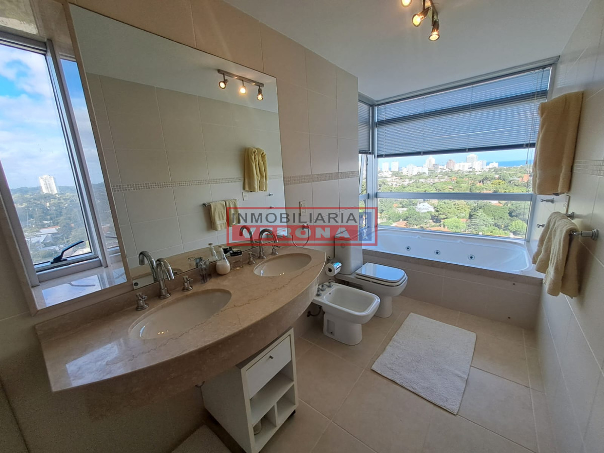 ESPECTACULAR apartamento, con excelentes vistas a la punta. Ubicado a pocos metros del Mar. Unidad de 3 Dormitorios, 3 Baños en Suite, cocina definida con terraza lavadero, Living Comedor, terraza panorámica. Edificio con servicios, Sauna ,Piscina, cancha etc.