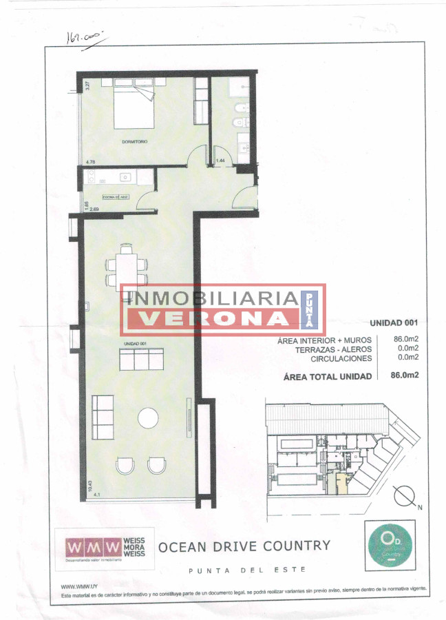 Moderno apartamento en edificio Ocean Drive Country de Avenida Roosevelt. Cuenta con 86 m2 los cuales se distribuyen en 1 dormitorio, cocina definida, baño, amplio living comedor y garaje.