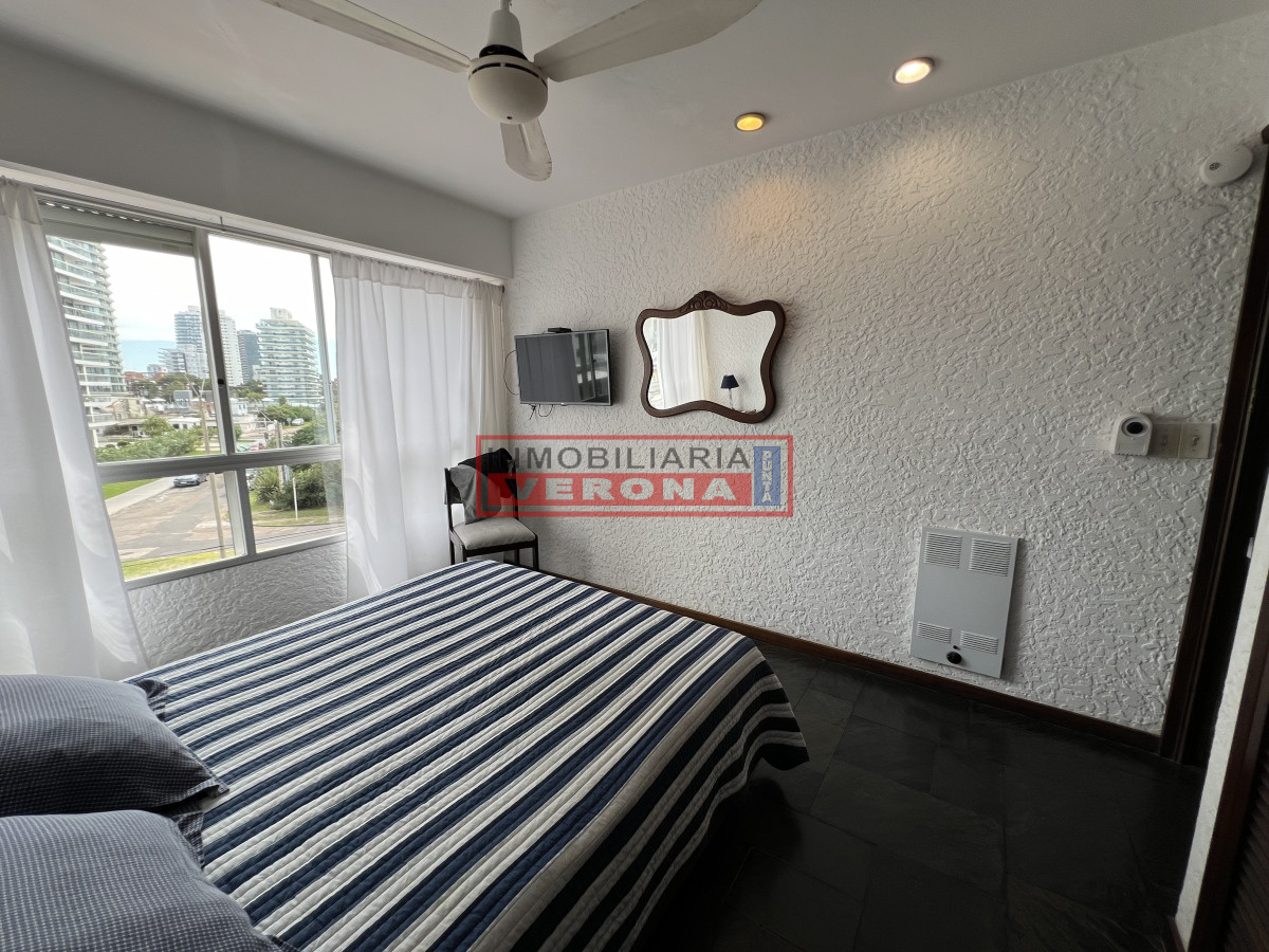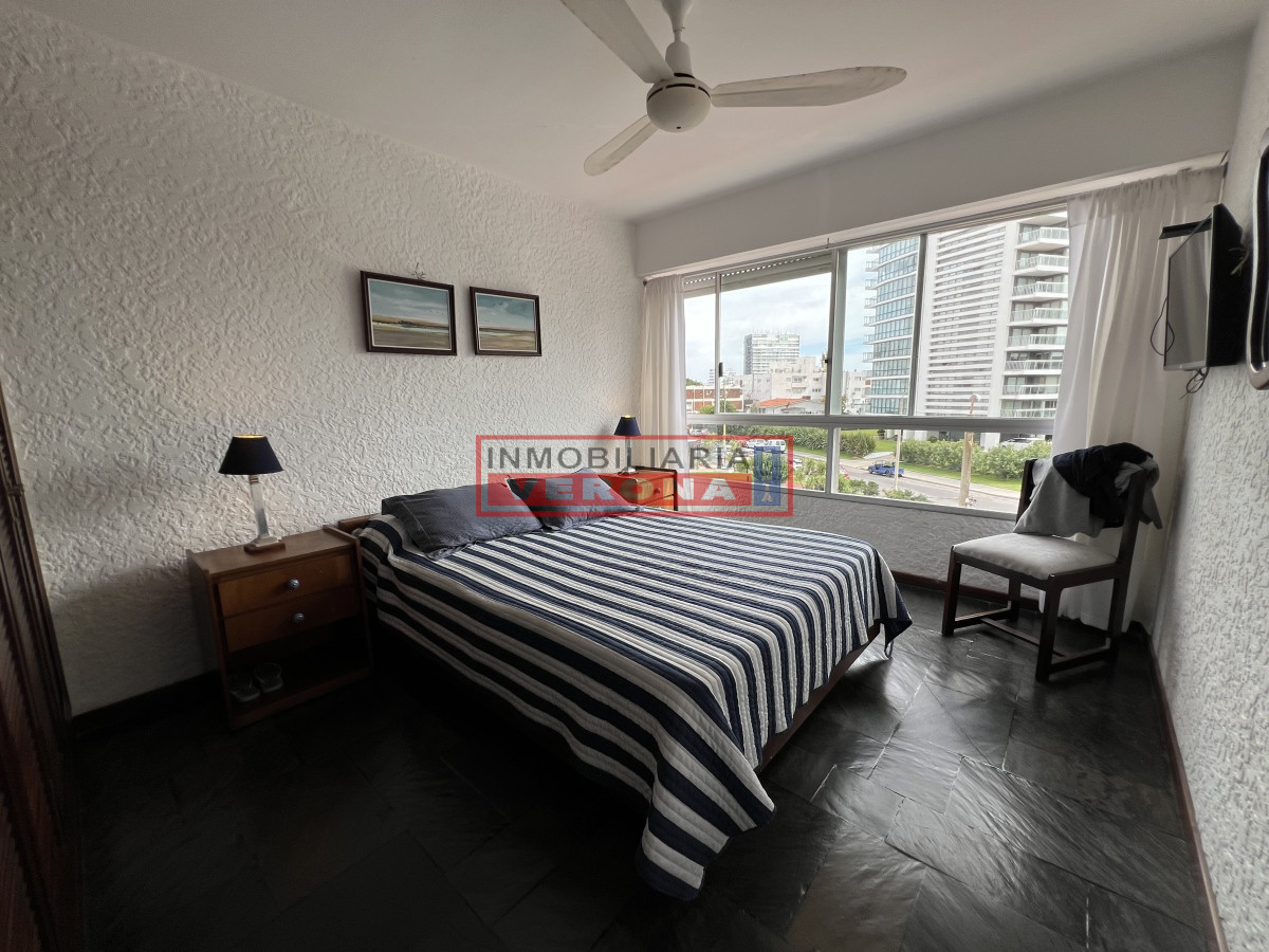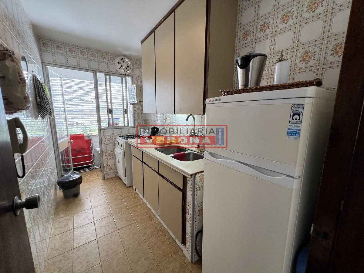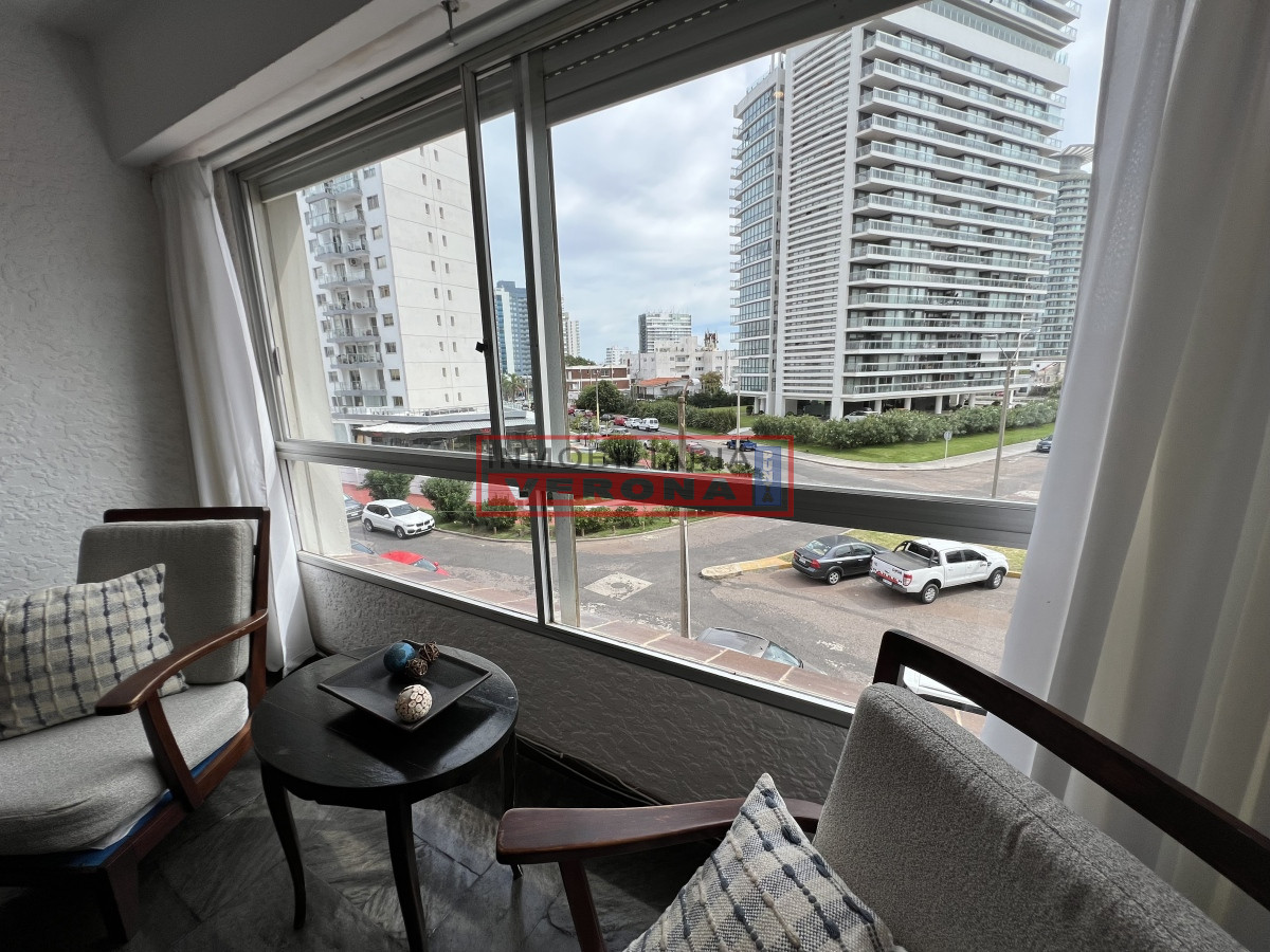 Precioso apartamento en Playa Brava. Living comedor luminoso y soleado, cocina definida, con terraza lavadero, 1 dormitorio, 1 baño, cochera. Servicio de mucama, portería 24 horas, cochera, piscina, servicio de playa en temporada, gimnasio y sauna, etc.