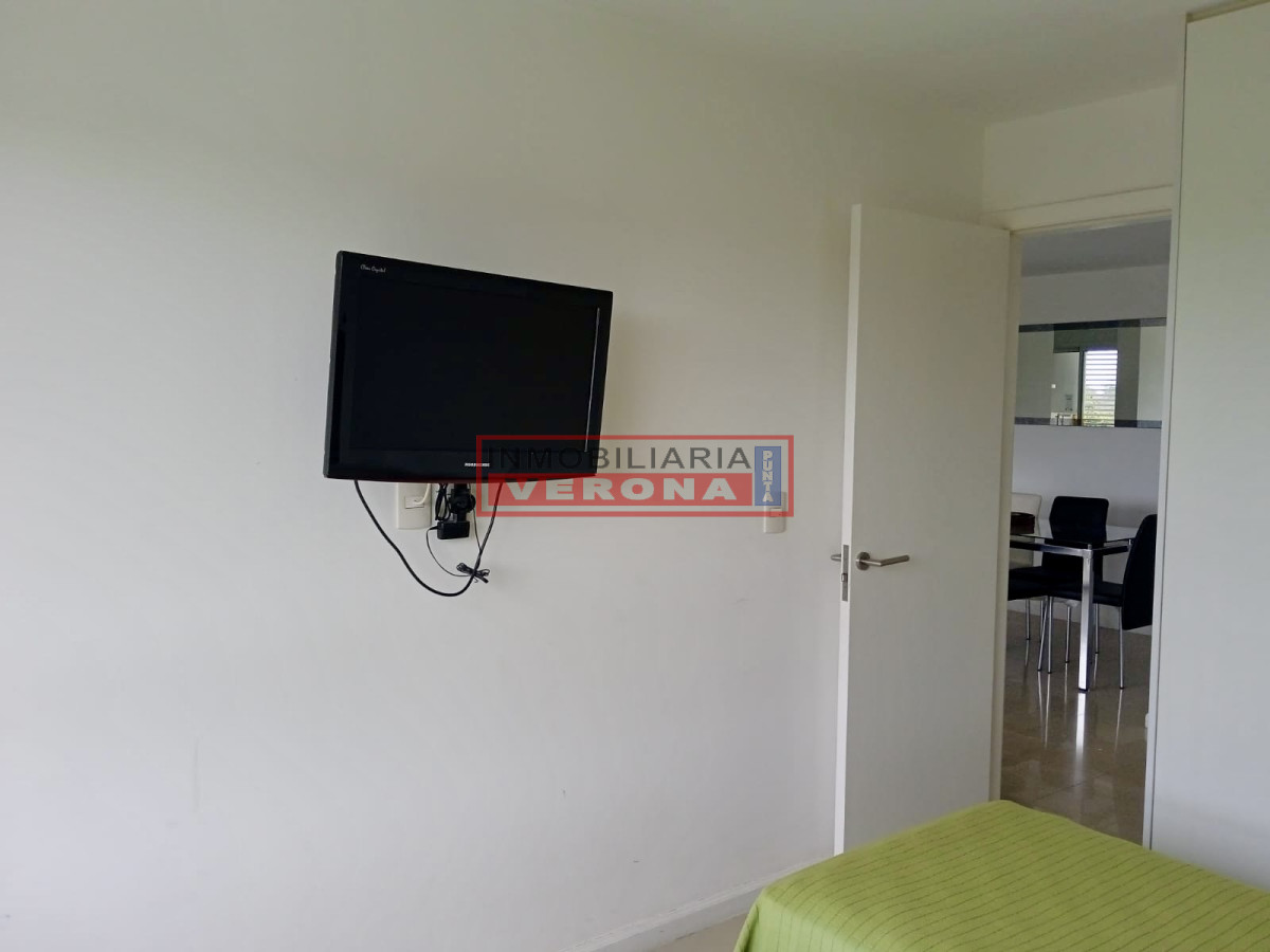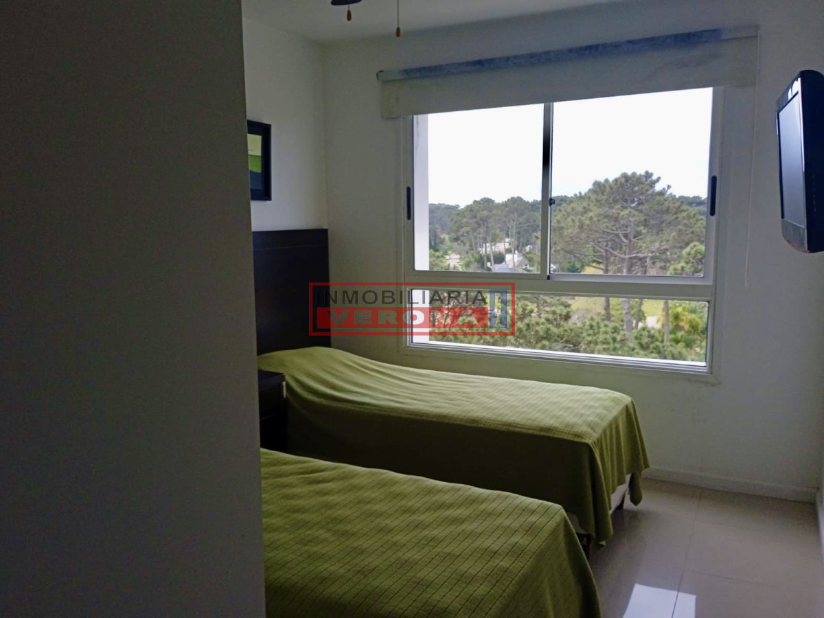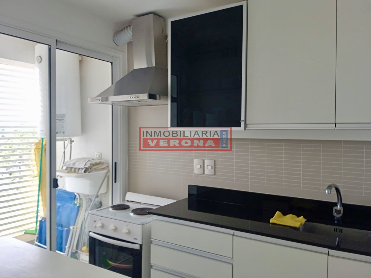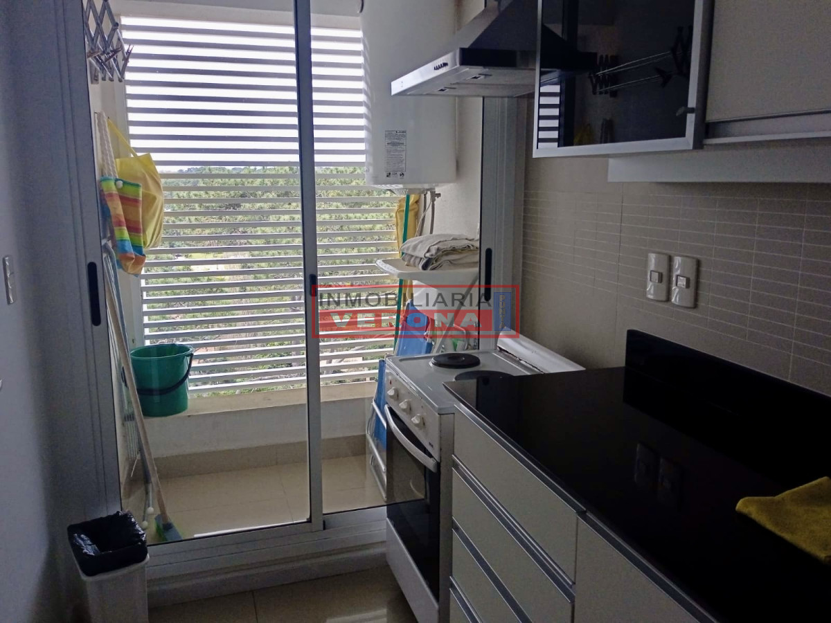 Apartamento sobre Roosevelt de dos dormitorios, dos baños, living comedor, terraza, cocina abierta al living, lavadero. Piscina abierta y cerrada, gimnasio, sala de juegos, barbacoa, sup.60 m².