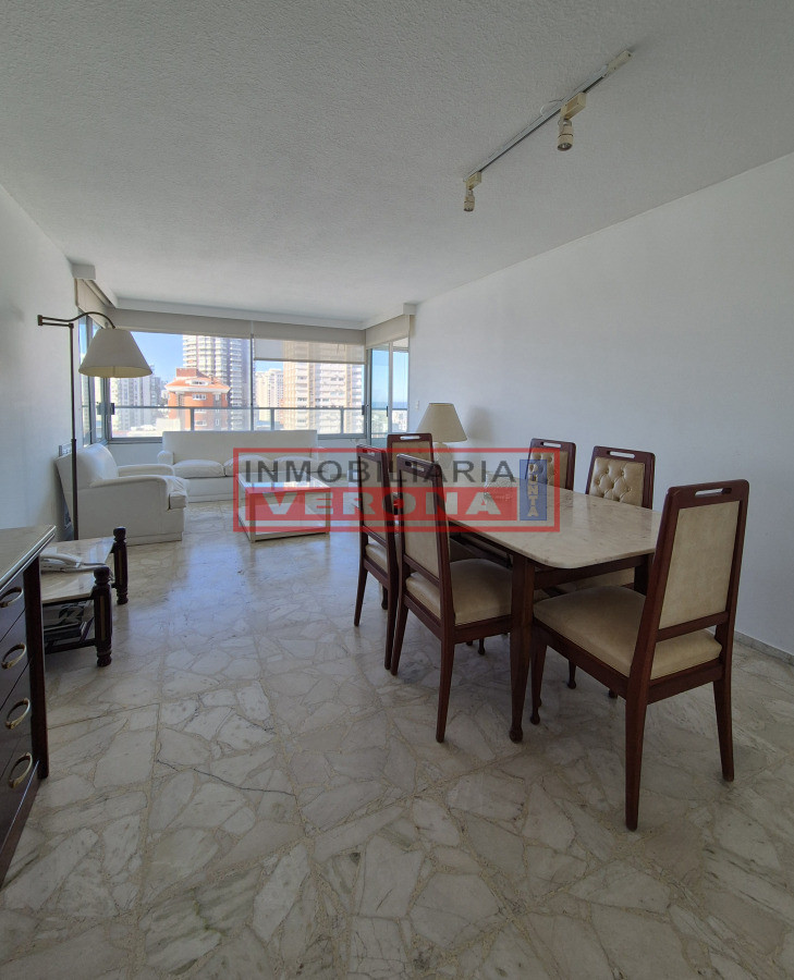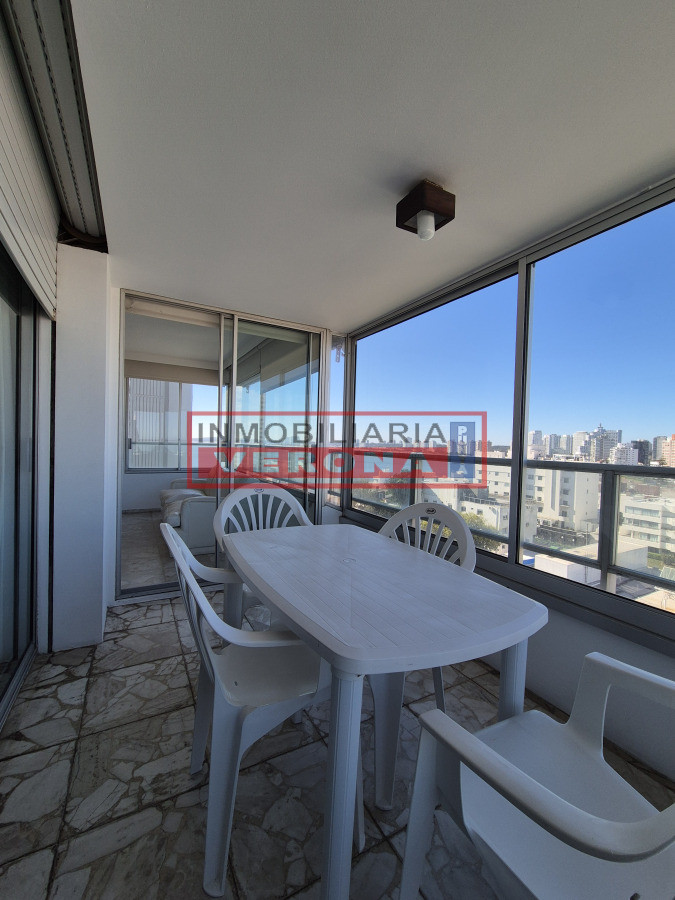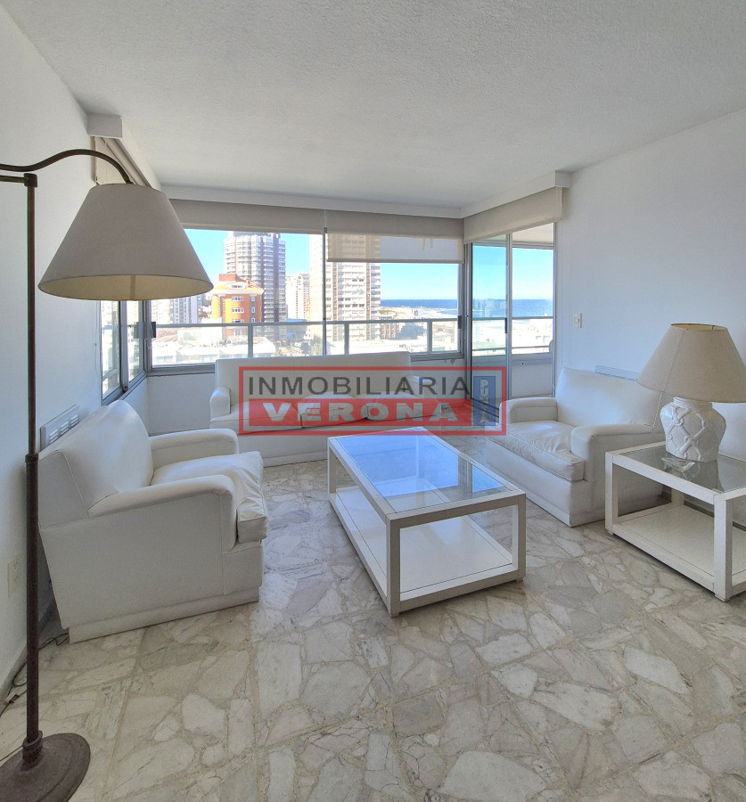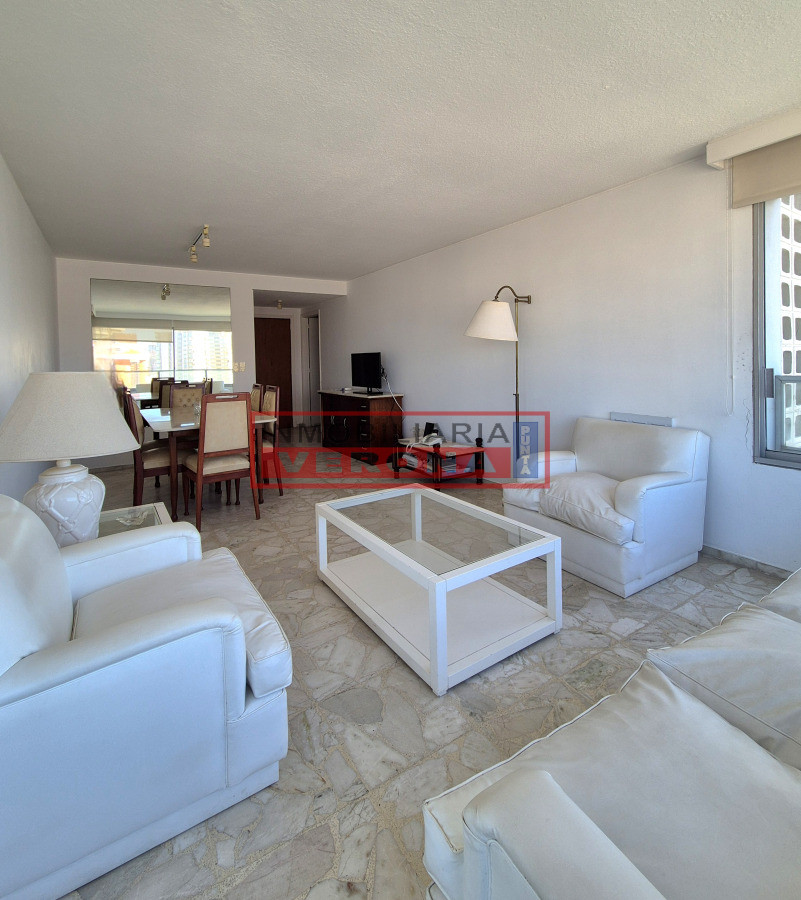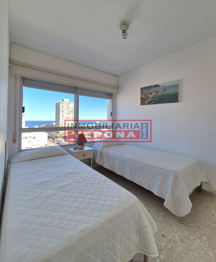 Se distribuye en living-comedor amplio y muy luminoso con acceso a una terraza que fue cerrada. Cocina definida con lavadero y comedor diario. Dormitorio principal en suite con salida al balcón. Segundo dormitorio con dos camas y vista a la Brava e isla de Lobos. Dependencia de buen tamaño con placard empotrado y baño completo. Cuenta con garage en subsuelo. Edificio de sólida construcción de categoría. Ofrece recepción 24hs y servicio de mucama. Se vende amoblado. Listo para transferir.