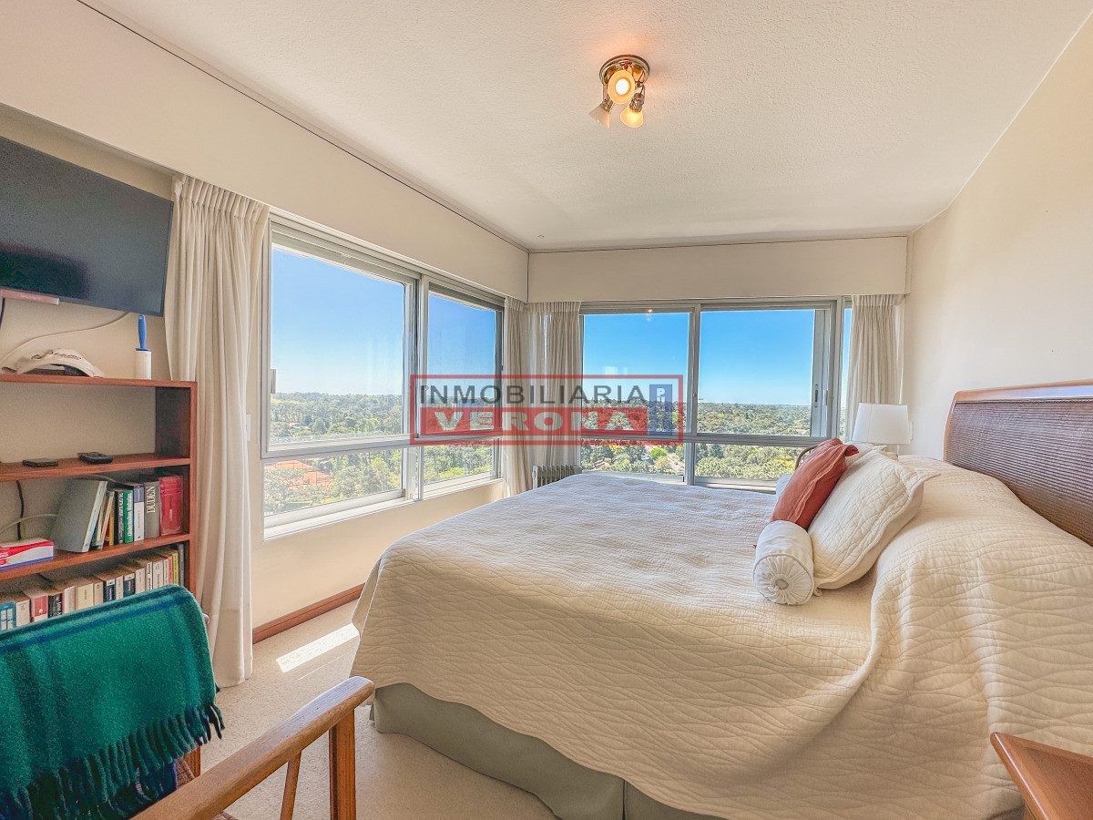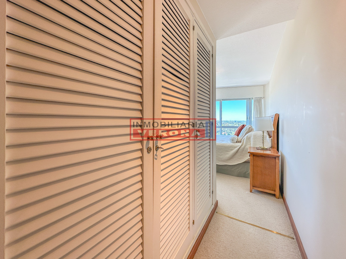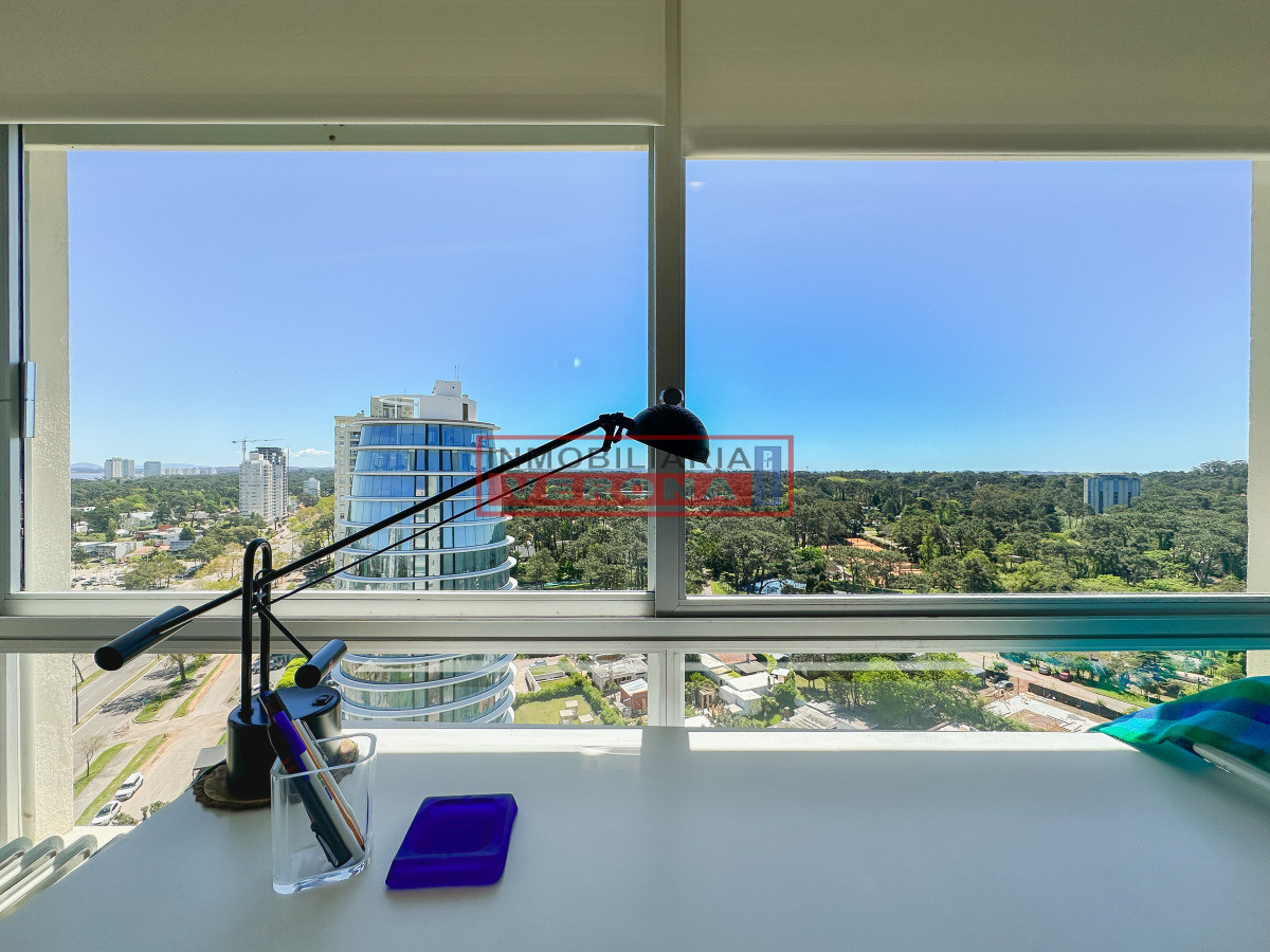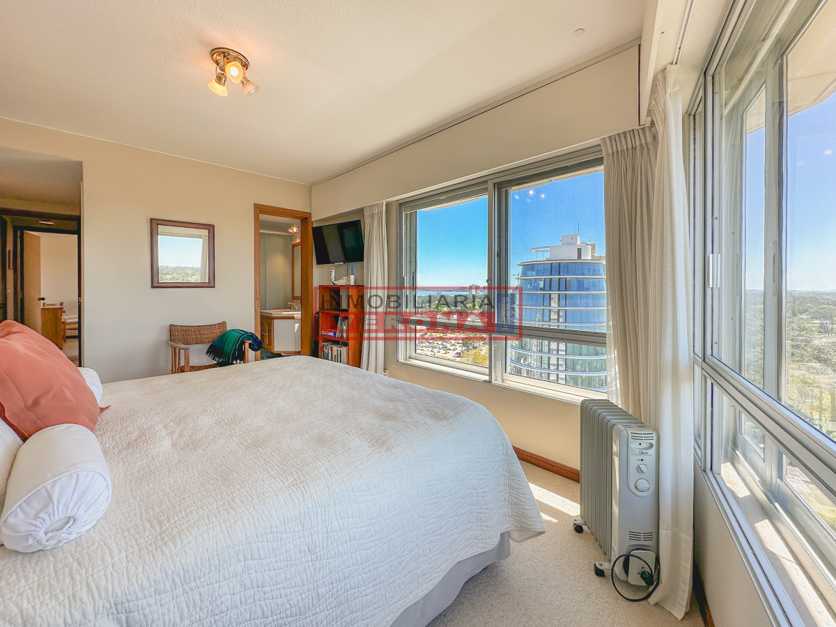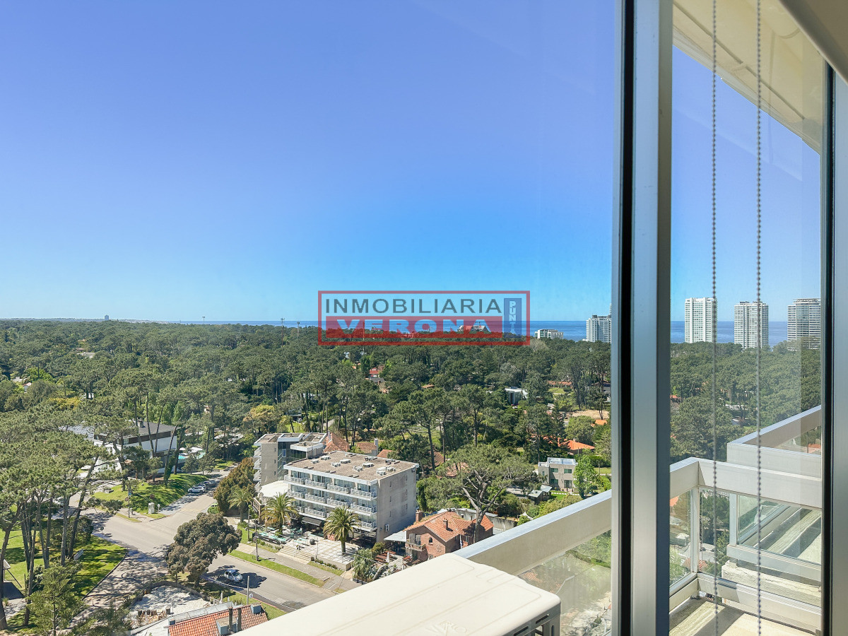 Apartamento sobre Av Roosevelt a pasitos de Punta Shopping, Boulevard Gourmet y Design District, en el corazón de Punta del Este. Piso alto orientado hacia el Norte, con excelente iluminación y vista tanto a playa Brava como a Mansa. Living-comedor amplio con balcón cerrado. 2 dormitorios (principal en suite), 2 baños completos. Cocina definida con acceso de servicio más dependencia con tercer baño. Gran garaje en subsuelo con baulera. El edificio cuenta con recepción 24hs, servicio de mucamas, gym, piscina exterior, jacuzzi, SUM, playroom y lavadero.