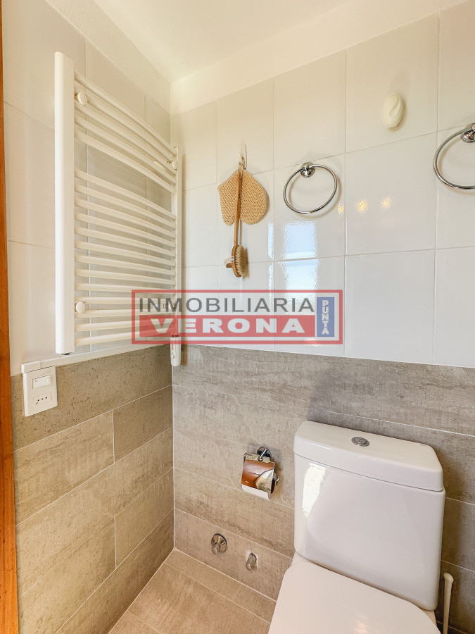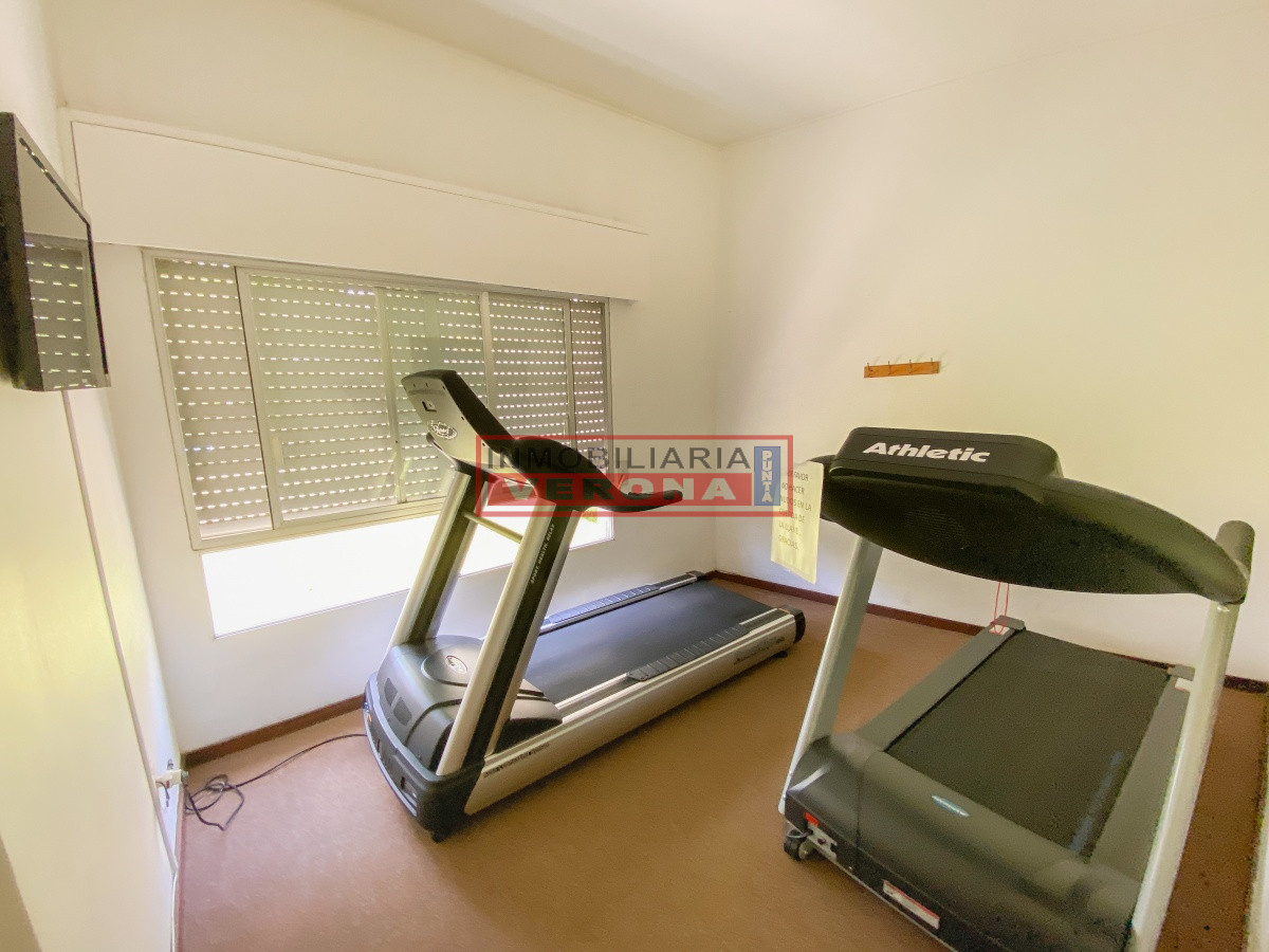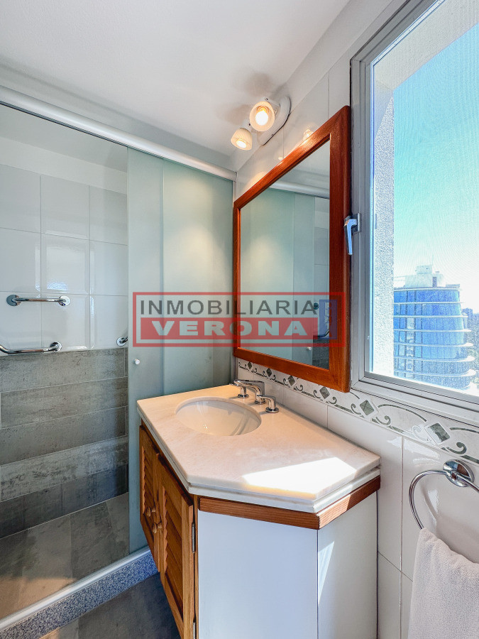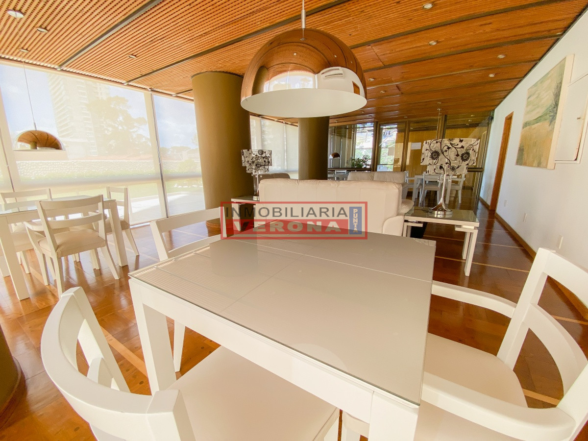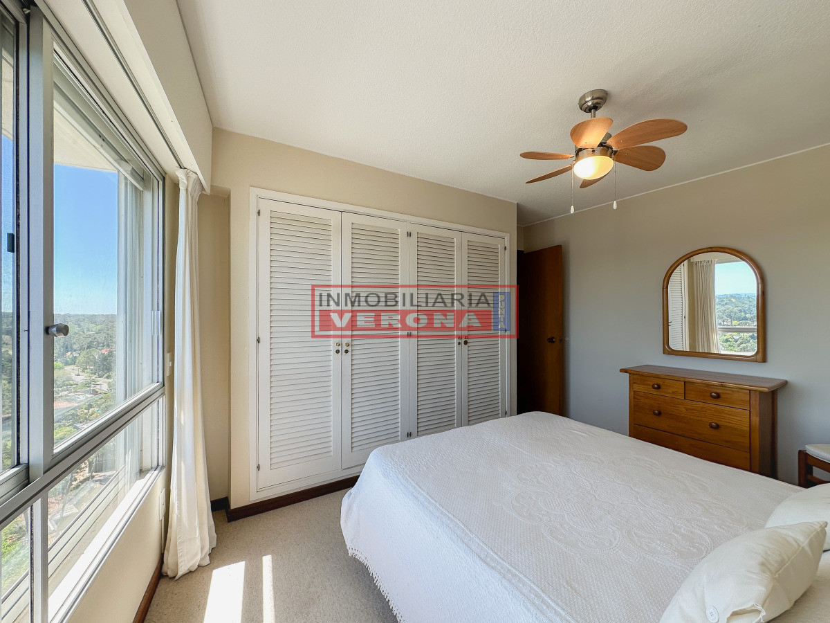 Apartamento sobre Av Roosevelt a pasitos de Punta Shopping, Boulevard Gourmet y Design District, en el corazón de Punta del Este. Piso alto orientado hacia el Norte, con excelente iluminación y vista tanto a playa Brava como a Mansa. Living-comedor amplio con balcón cerrado. 2 dormitorios (principal en suite), 2 baños completos. Cocina definida con acceso de servicio más dependencia con tercer baño. Gran garaje en subsuelo con baulera. El edificio cuenta con recepción 24hs, servicio de mucamas, gym, piscina exterior, jacuzzi, SUM, playroom y lavadero.