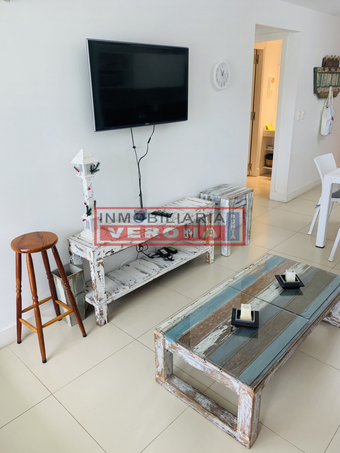 Edificio Unique. Excelente opción con muy buenas dimensiones, balcón super amplio con parrillero. Living comedor con cocina integrada, dormitorio amplio, medio dormitorio cerrado y baño completo.