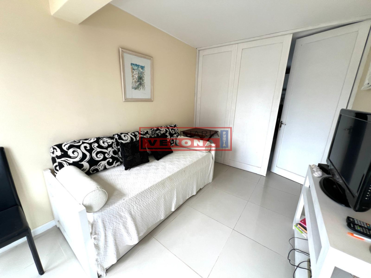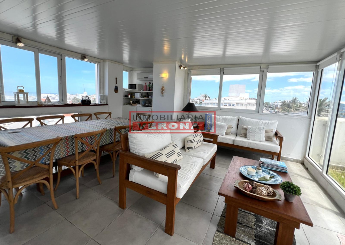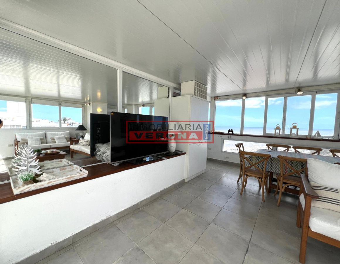 Divino apartamento en venta frente al mar en la península, frente a la playa de los ingleses. En impecable estado. Dos dormitorios, cocina con divina vista al mar, un baño, balcón. En plata alta, amplia barbacoa de uso exclusivo , con impresionantes vistas al mar. Con parrillero, amplio salón comedor, y living, que lo convierten en un lugar único para disfrutar an pleno. Box de depósito en planta alta y Baulera en subsuelo. Cómodo espacio de cochera en el garaje. Se vende equipado y amoblado. Edificio con Porteria y lavadero de uso común.