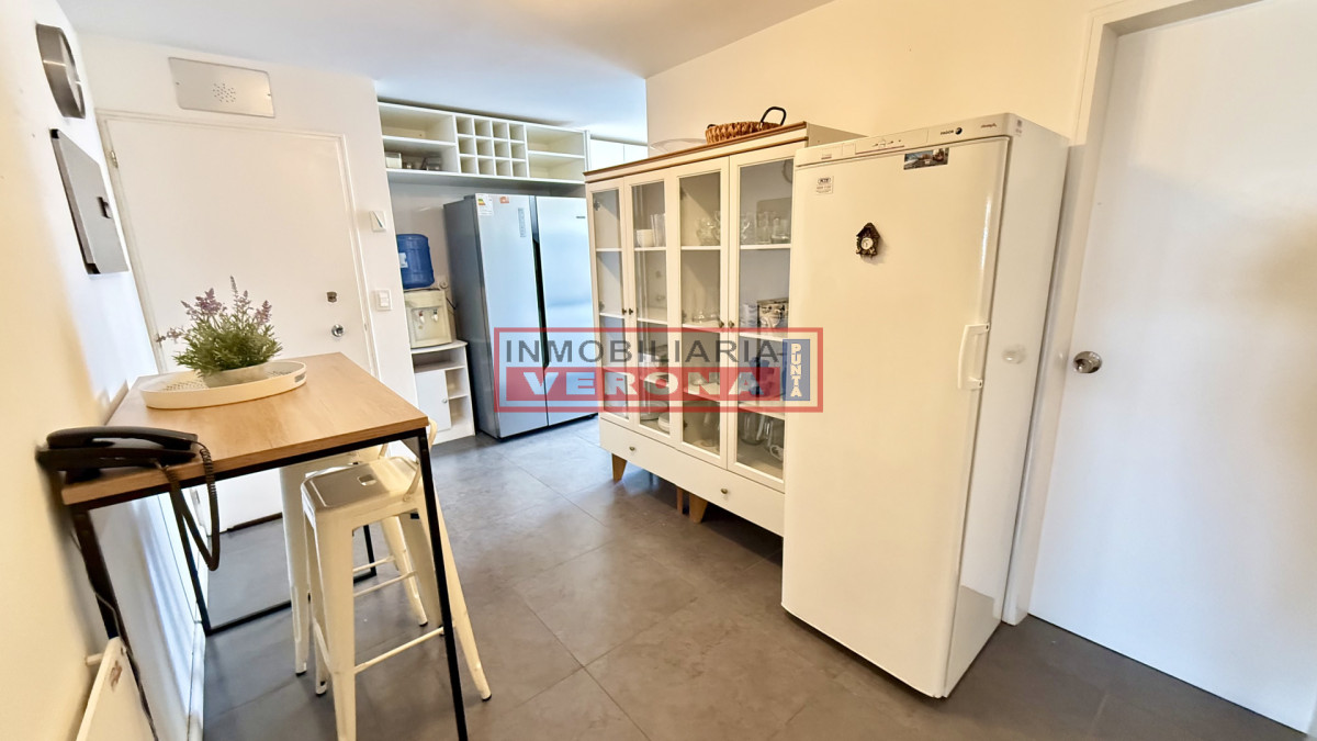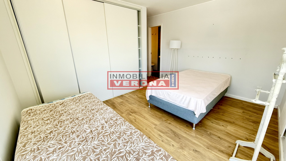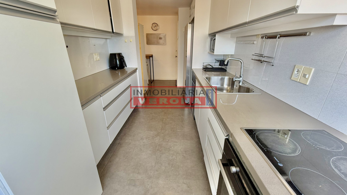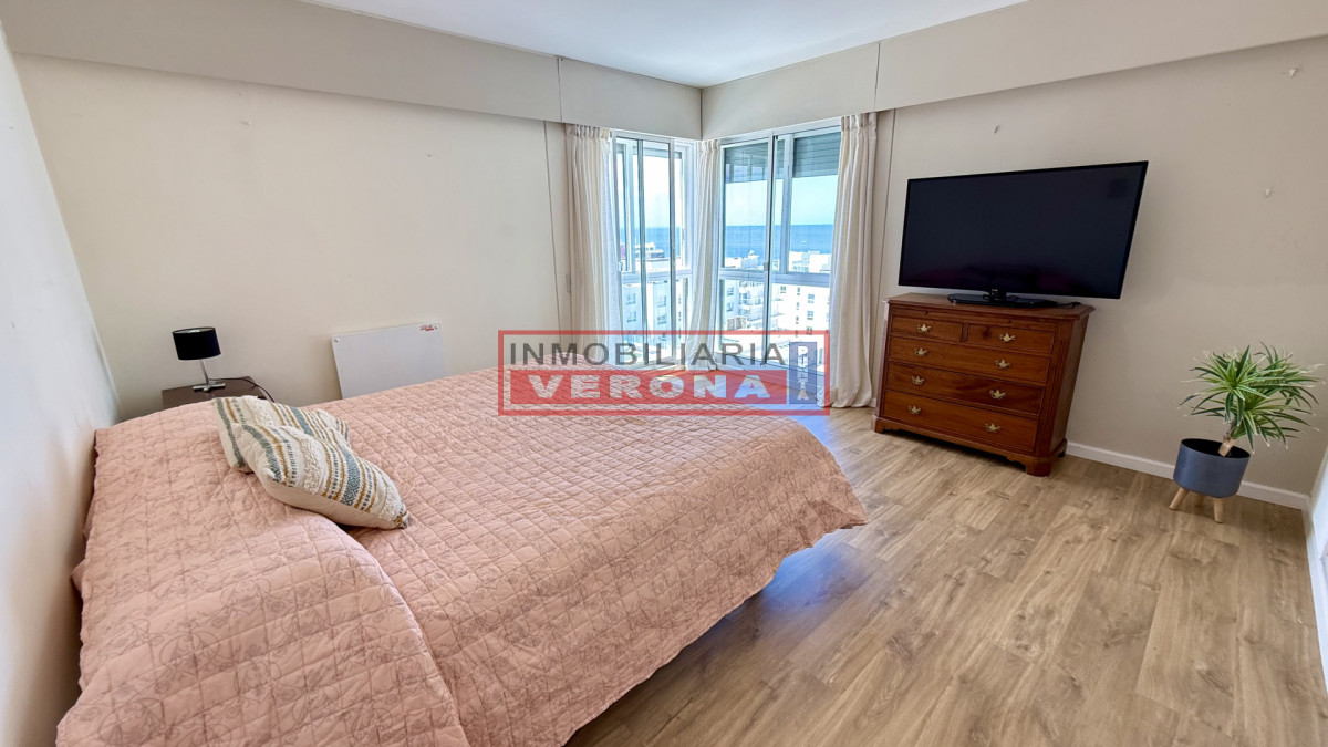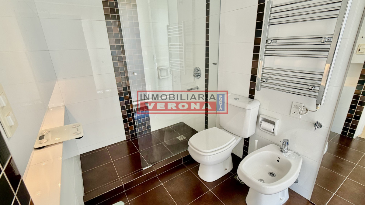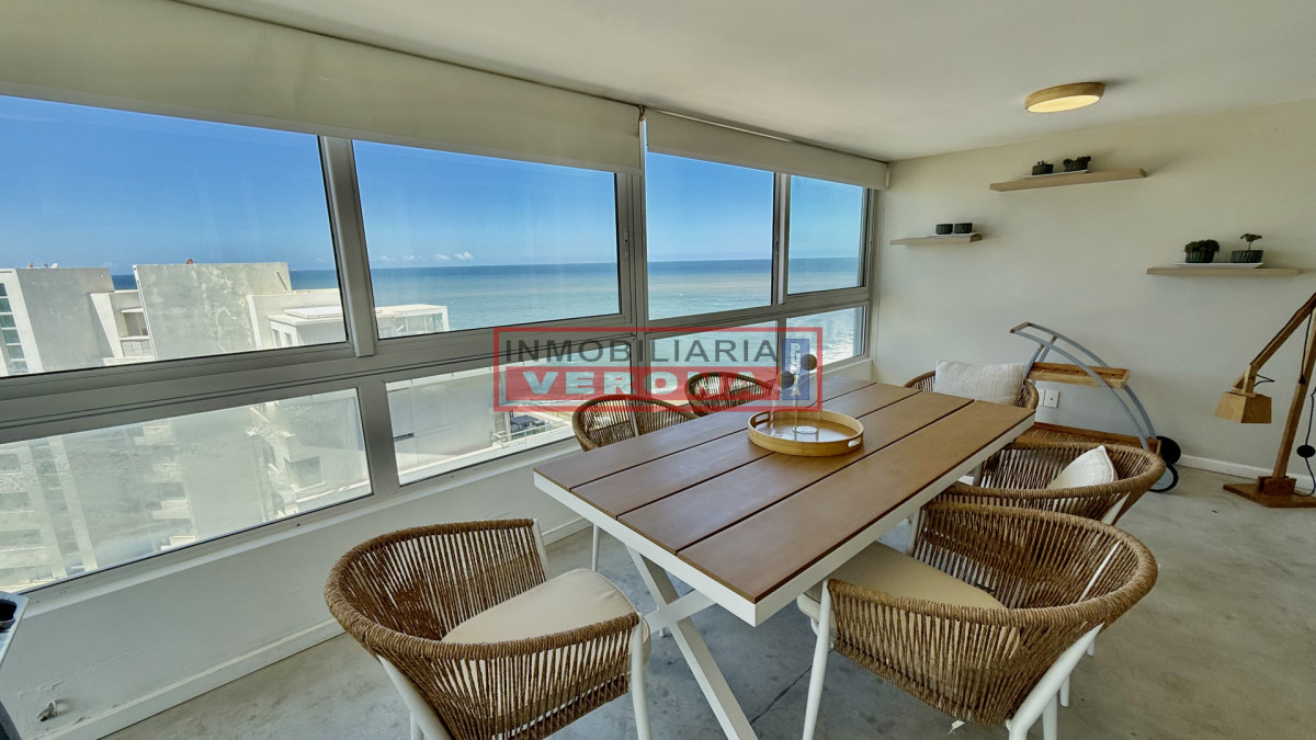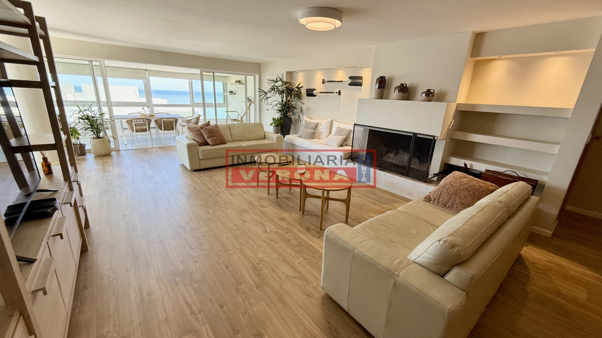 Amplio apartamento de 200m2 completamente reciclado y con hermosas vistas. Generosa recepción con estufa leña y terraza integrada. 3 dormitorios, 3 baños (todos en suite), todos viendo el amanecer y recibiendo sol gran parte del día, amplia cocina con breakfast, lavadero y dependencia de servicio con baño. Cuenta además con doble garaje en subsuelo. El edificio ofrece recepción 24hs, piscina exterior climatizada, cancha de tennis, 2 saunas secos, vestuarios, salón para fiestas, parrillero equipado, servicio de playa y servicio de mucama (optativo).