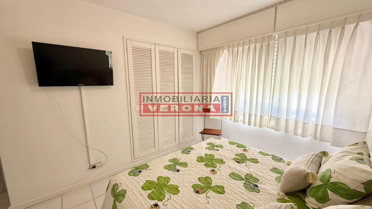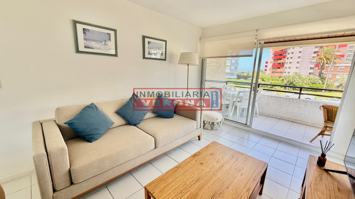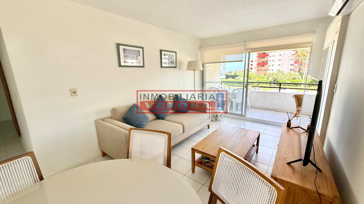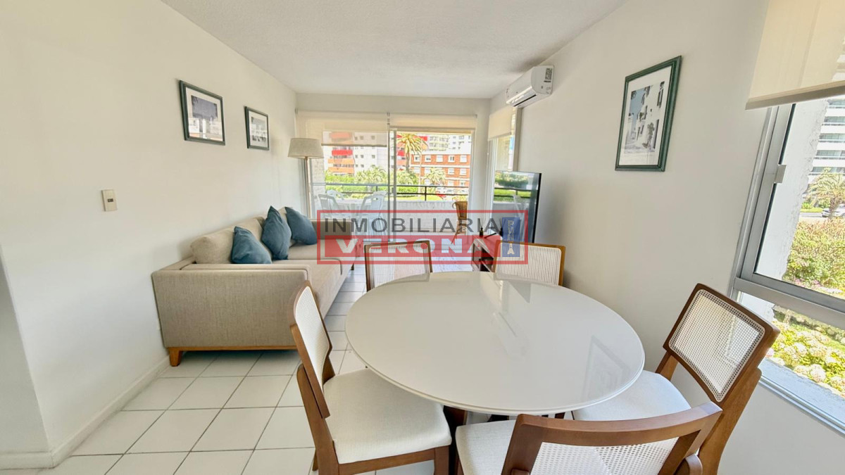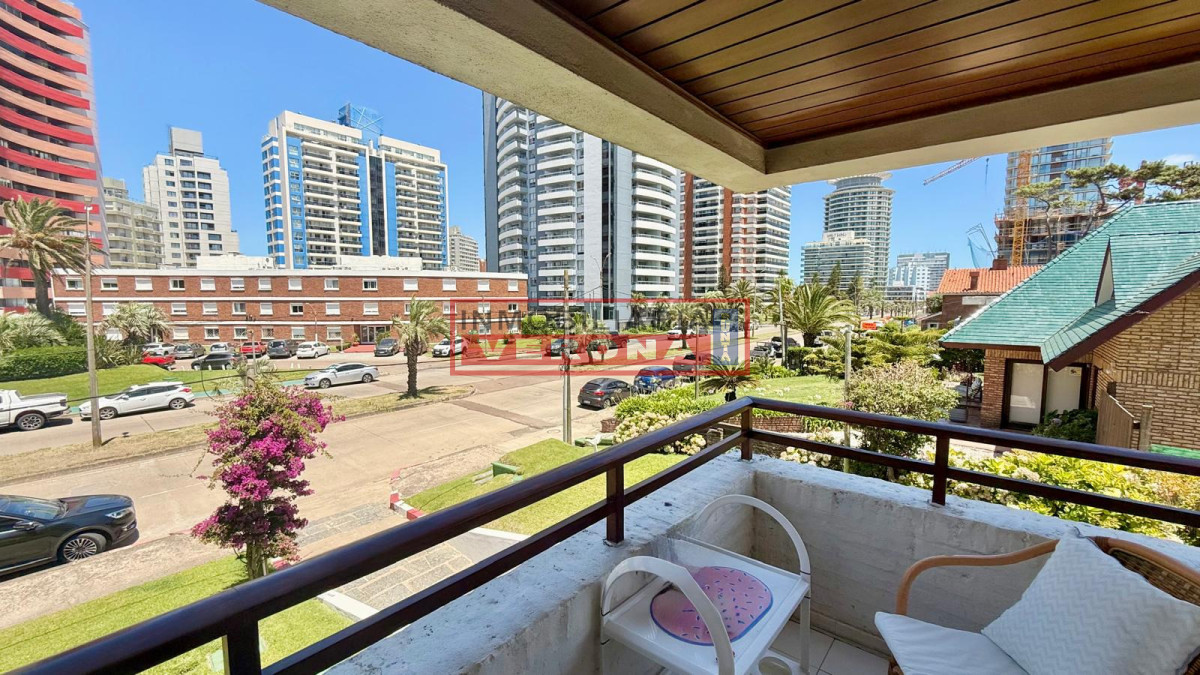 Impecable apto de 2 dormitorios. Amplio living comedor, gran terraza a la calle, cocina súper equipada con lavadero, 2 baños y garaje. Cuenta con wifi y smart TV. El edificio ofrece servicio de portería , serv. de mucamas todos los días, piscina, solarium, gran parque y parrillero común.