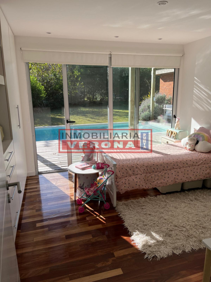 La propiedad cuenta con tres dormitorios en suite, todos bien distribuidos y con excelentes niveles de iluminación natural. Los dormitorios están equipados con placares amplios, aire acondicionado y baños completos que incluyen bañera y bidet, ofreciendo el máximo confort a residentes e invitados.