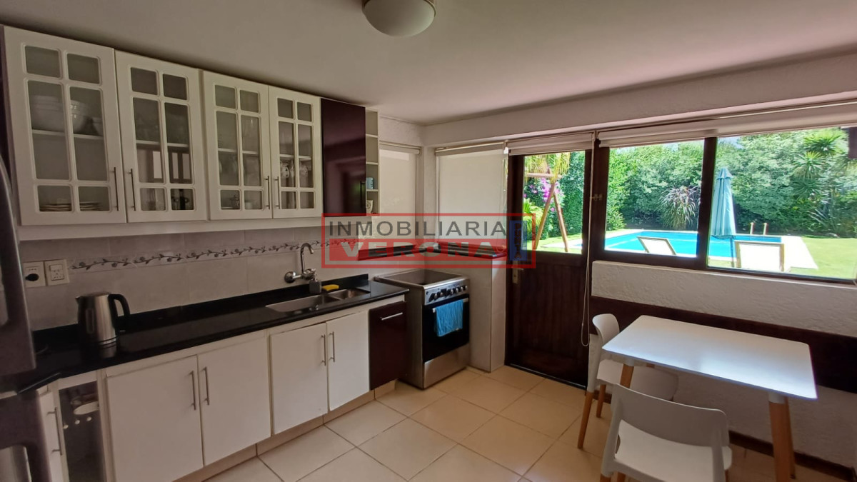 Ideal para vivir todo el año. Ubicada en zona de residencia al igual que comercial. Cerca de centros de interés como lo son Punta Shopping, facultades, centros médicos, gastronómicos y mucho más. Cuenta con garaje para 2 autos en subsuelo , amplia cocina comunicada a living comedor, dormitorio en suite abajo. Hermosa piscina y barbacoa cerrada al fondo